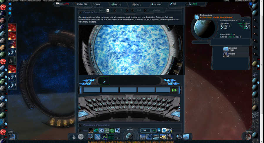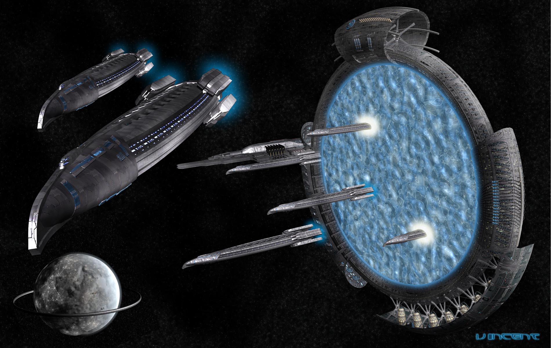 Les techniques furent perfectionnées, des transports réguliers se faisaient maintenant entre les deux planètes et la recherche spatiale poussait plus loin l'investigation dans le système jusqu'au jour où fut découvert la porte. Du moins ils supposaient que ça en était une. L'étude de cette structure entraîna rapidement de grands progrès. Les deux mondes envoyèrent de quoi construire des centrales d'énergie pour tenter de faire fonctionner la porte.