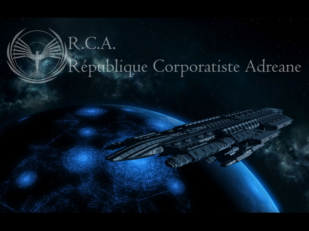 La République Corporatiste Adréane (R.C.A) fut fondée en 15.489 TSU. Son fonctionnement reprend en partie la base idéologique de son prédécesseur OPU, l'importance de la démocratie et de l'écoute des peuples gouvernés est réaffirmée. Le marché est également libéralisé pour stimuler l'économie, satisfaisant ainsi aux exigences des grandes corporations ayant soutenu l'insurrection contre le régime antérieur. Ces dernières se voient également dotées d'une partie du pouvoir décisionnaire avec la création d'une « Chambre du Consortium » censée défendre l'intérêt des grandes entreprises et tempérer les excès et les dérives de « l'Assemblée de la République » démocratiquement élue par les citoyens, pour éviter que les erreurs du passé se répètent.